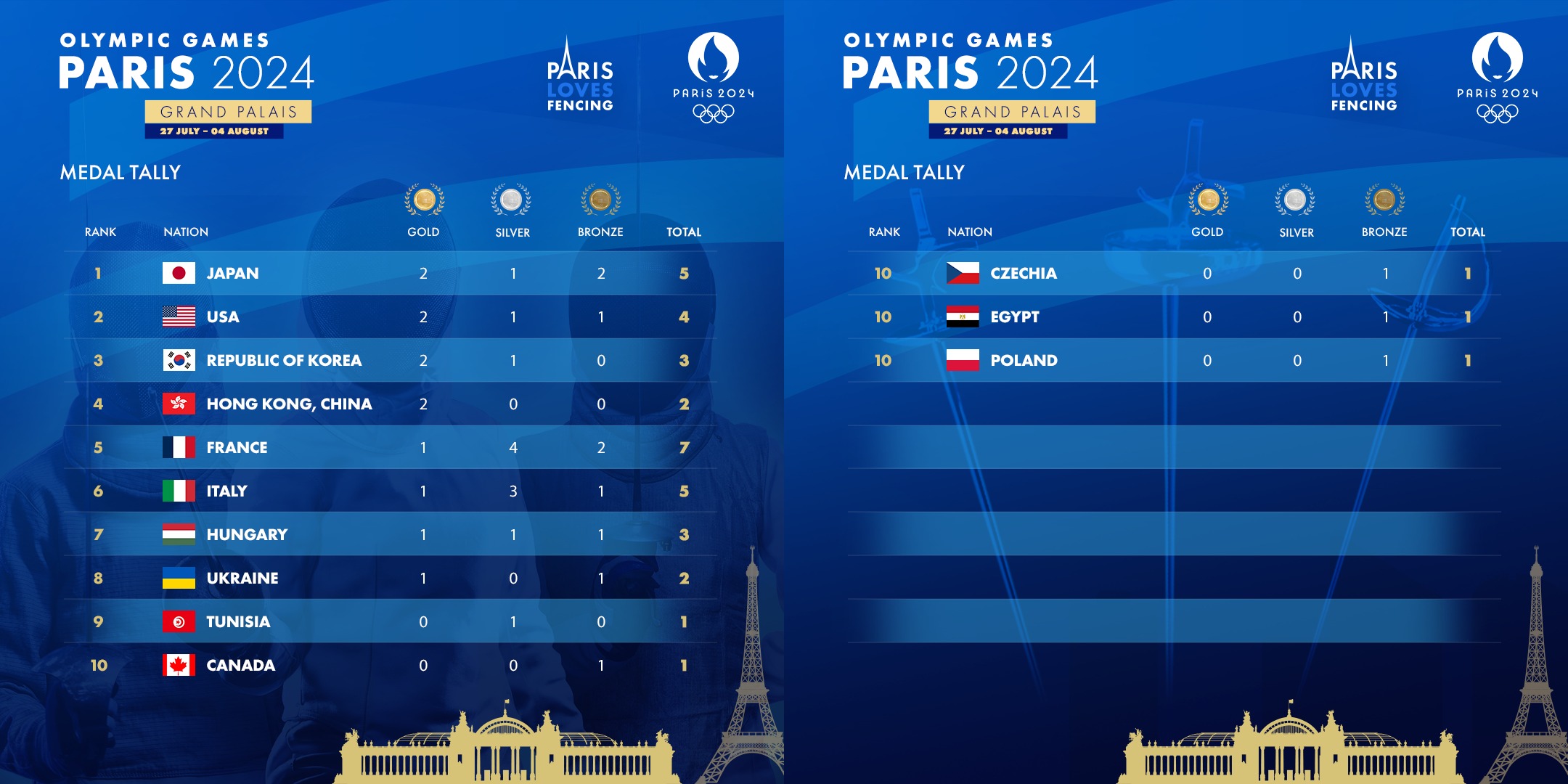 Complete information about fencing results and athletes at the Paris 2024 Olympic Games may be found on the official Olympic website and here on the FIE web site.