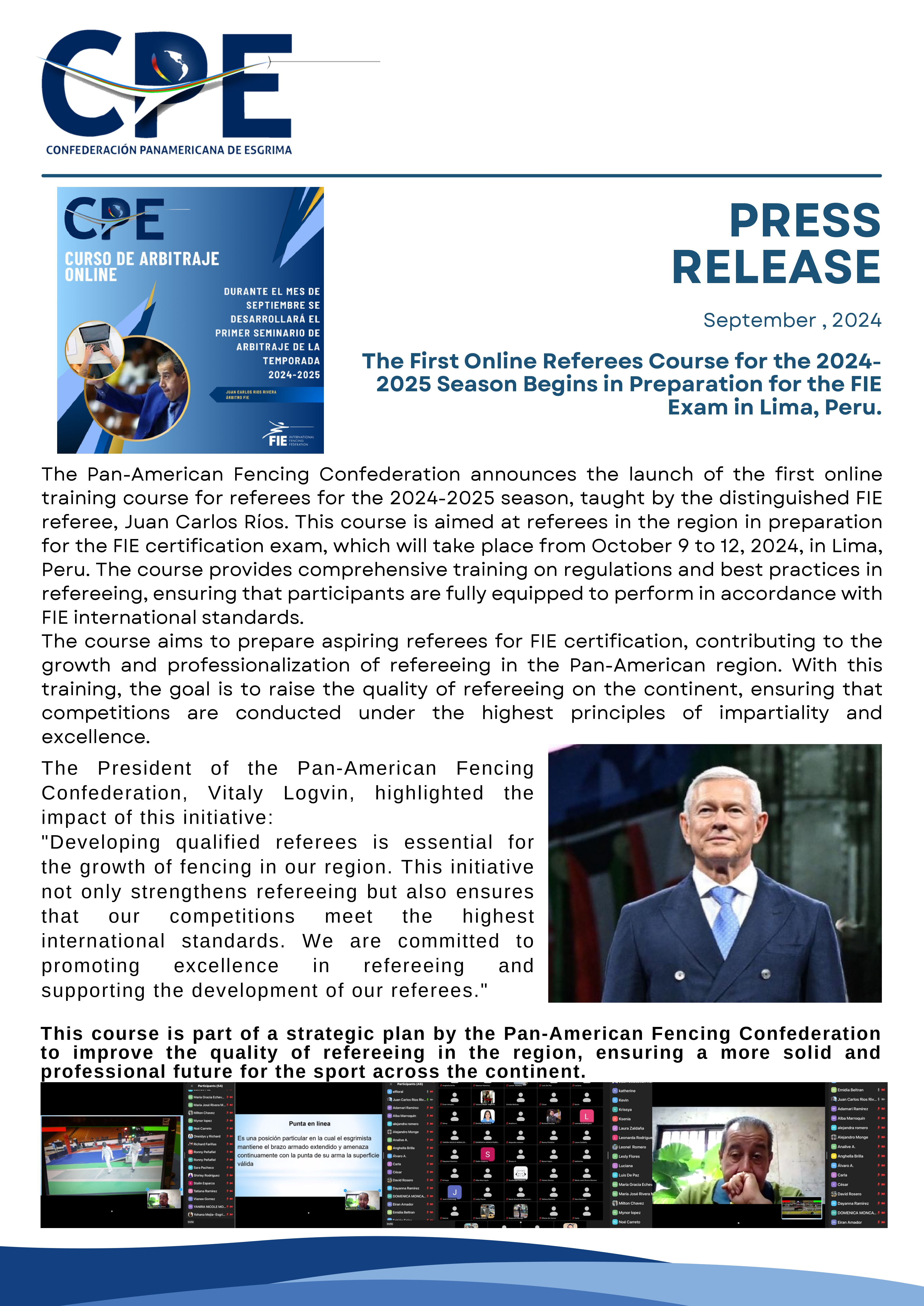 The First Online Referees Course for the 2024- 2025 Season Begins in Preparation for the FIE Exam in Lima, Peru.