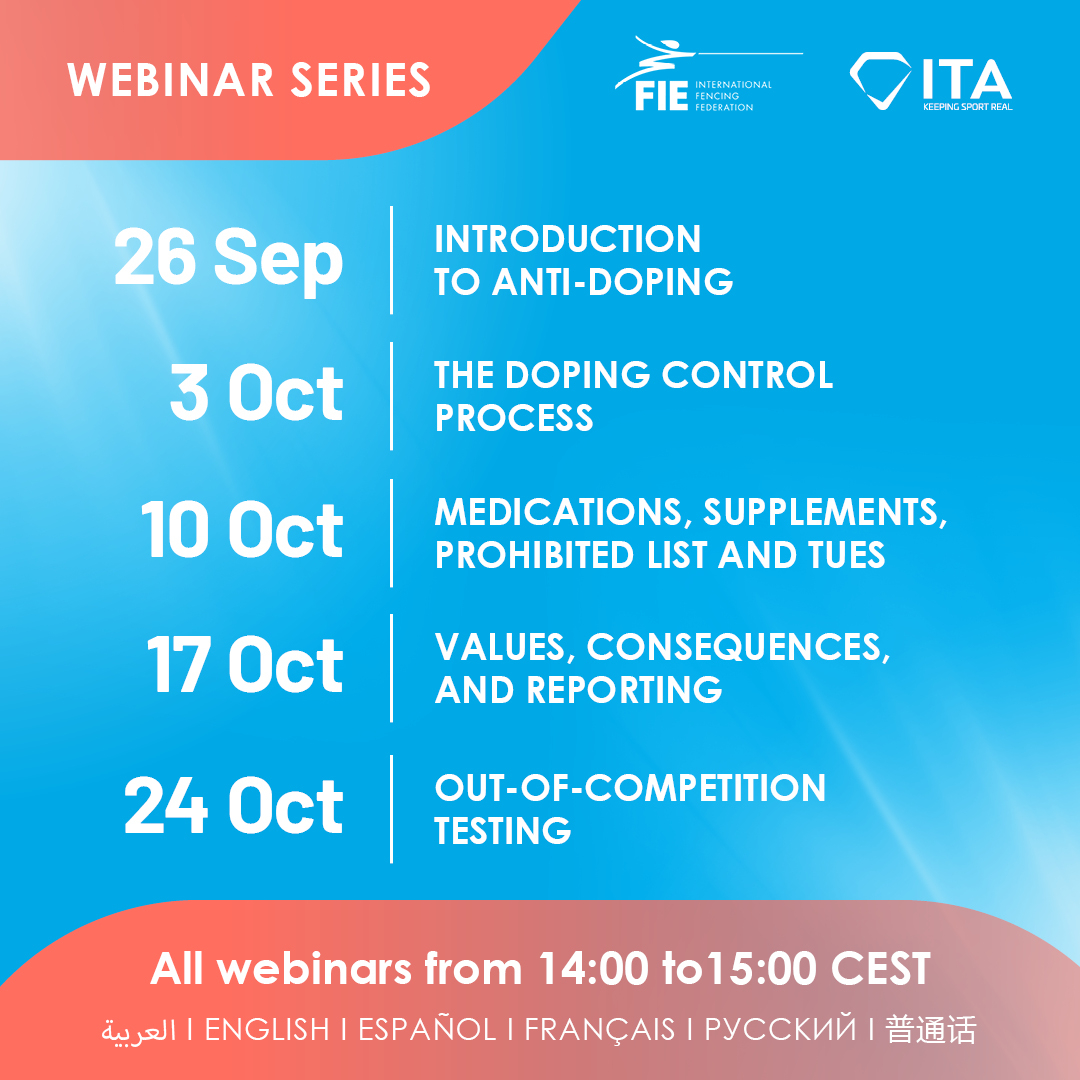 The third edition of the IF’s Anti-Doping Webinar Series, jointly organized by the ITA and FIE, will begin on Thursday, 26 September.