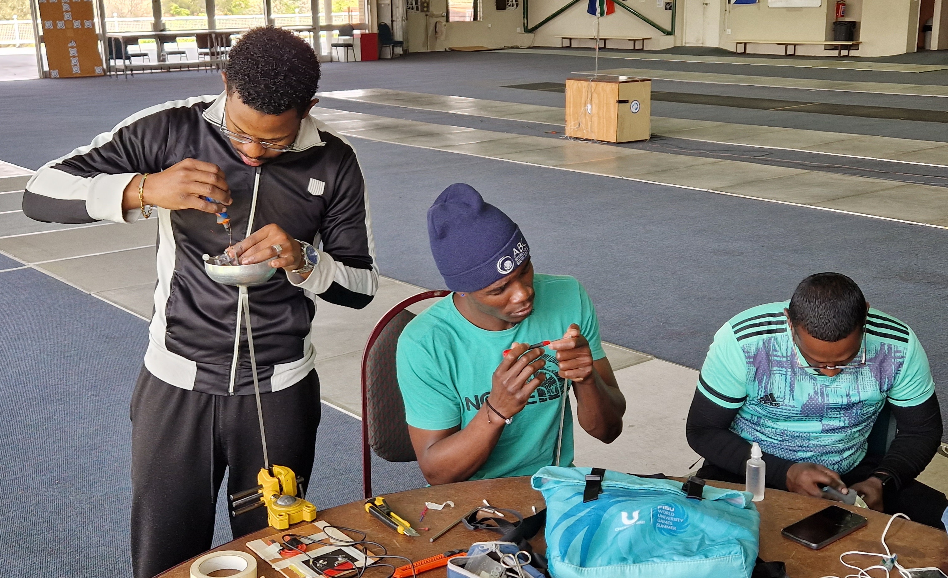 The last course was devoted to raising awareness of competition weapons control organisation and piste installation verification. In particular, the students were shown how to carry out this verification using a basic tester and DIY tools. This part of the training was particularly appreciated by the two Angolan students in view of the organisation of the next African Junior and Cadet Championships.