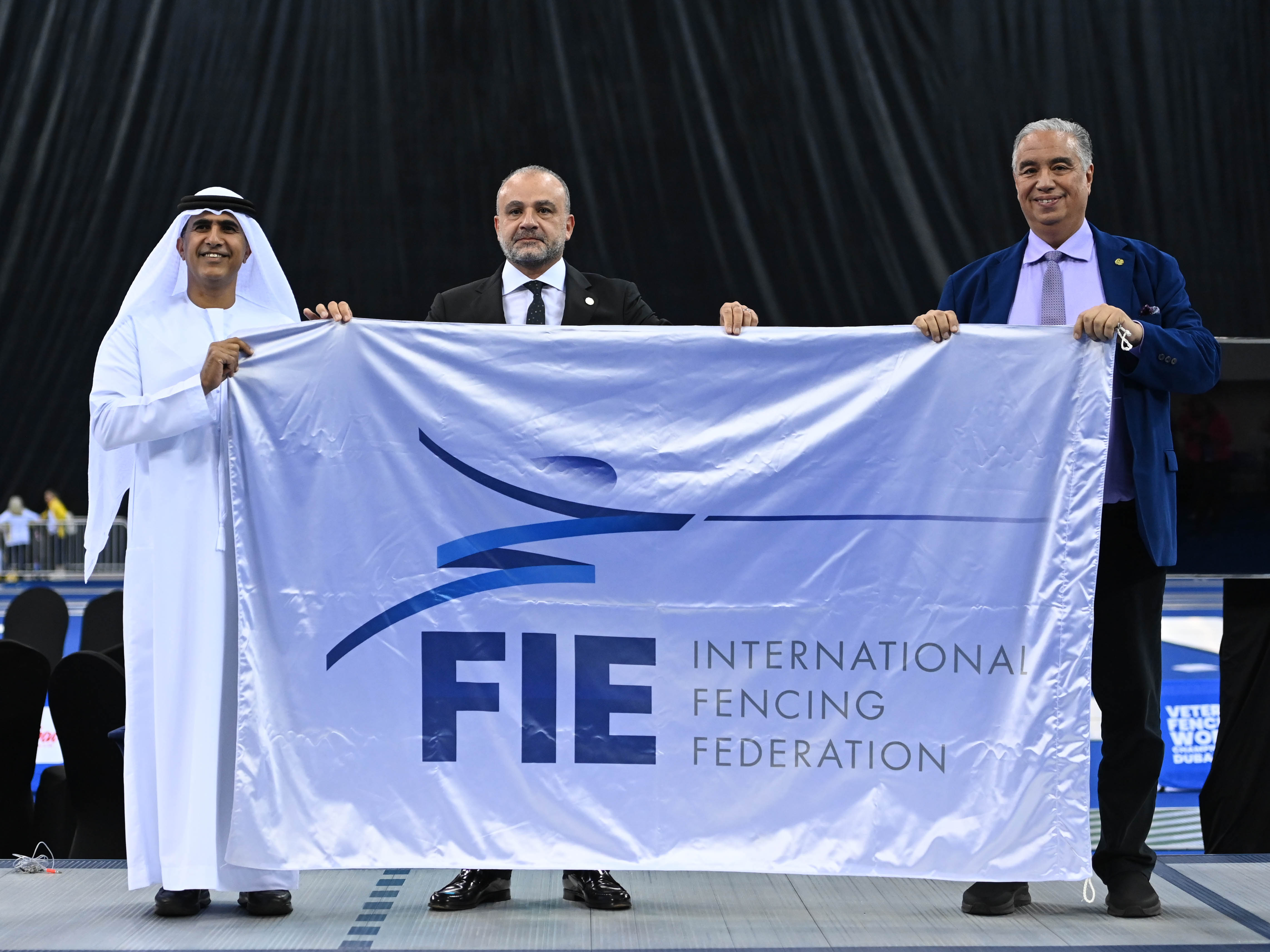 The FIE flag was ceremoniously passed from UAE to Tunisia, which will host the 2025 Veteran Fencing World Championships.